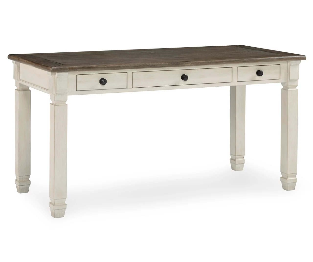 Whether your style is farmhouse fresh, shabby chic or country cottage, you’ll find this desk works on so many levels. Two-tone, gently distressed finish of weathered oak over antique white doubles up on character that’s enhanced with a plank-effect top. This trio of smooth-gliding drawers provide handy storage.