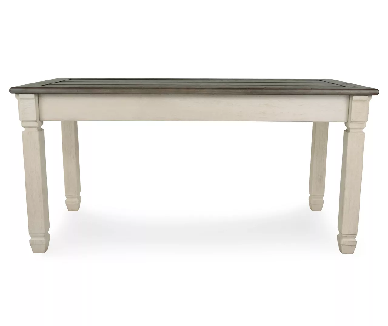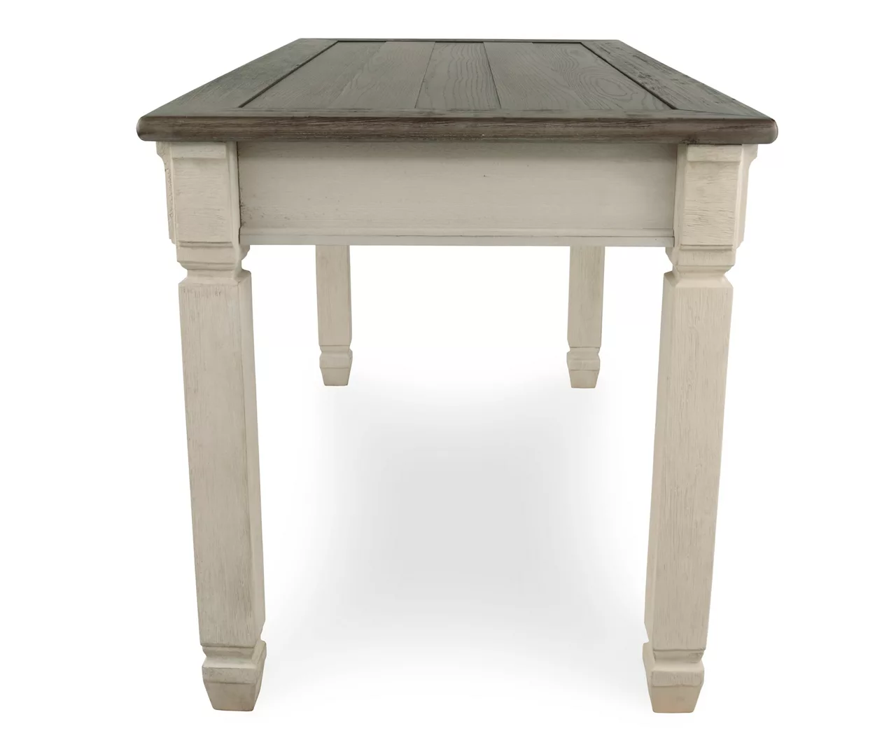 - Two-tone antique white and weathered oak finish