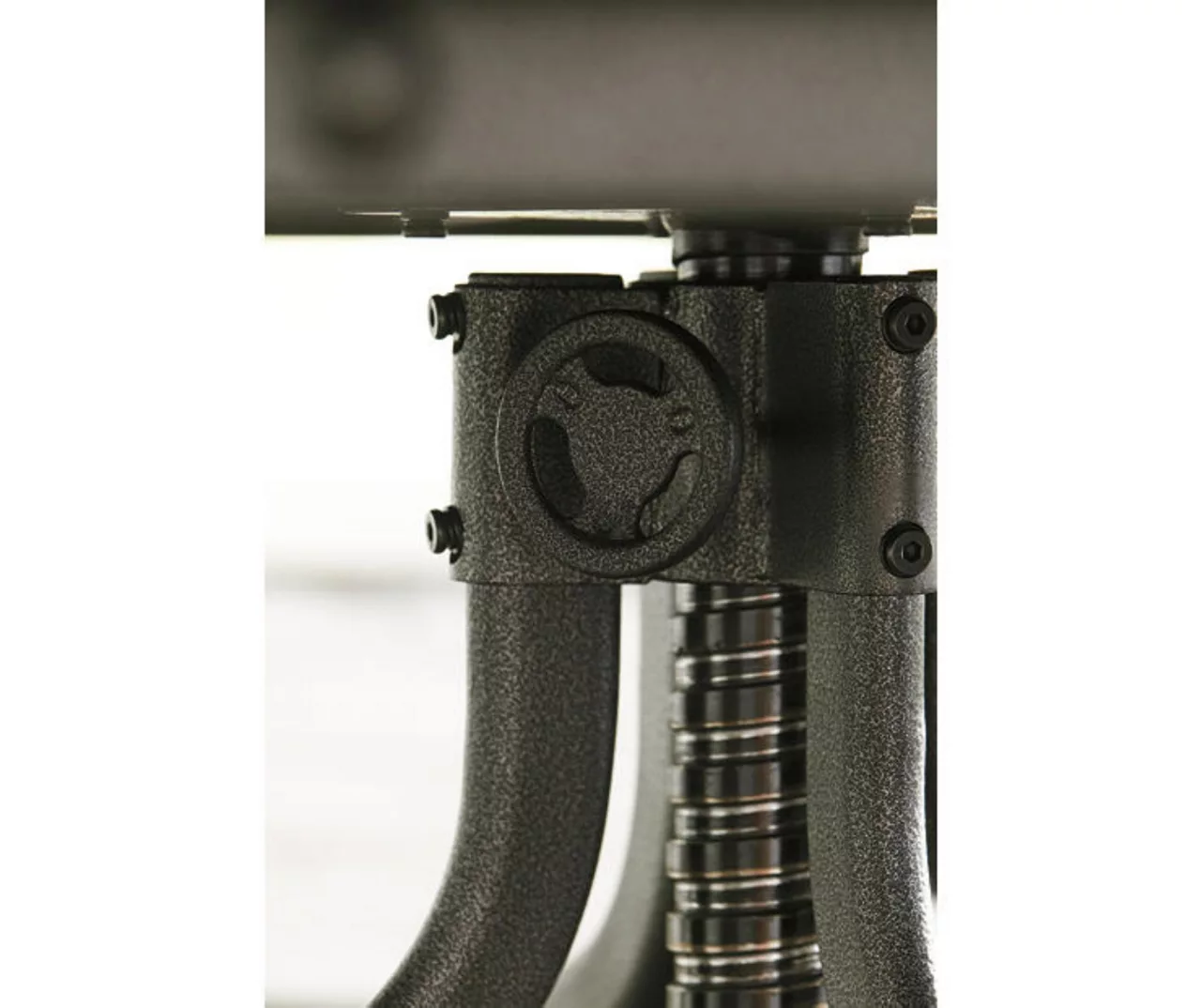 - Adjustable height stools feature swivel seating and comfortable footrests