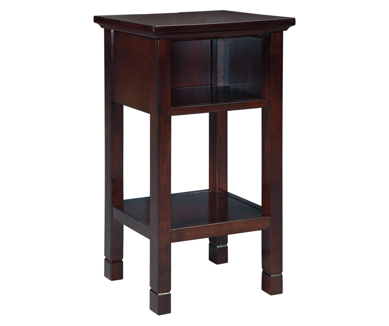 Your home called. It asked for the Marnville accent table. Dark brown finish is simply irresistible, elevating the silhouette with elegance. Clean lines maintain the contemporary aesthetic you crave. Open cubby and bottom shelf provide storage for essentials and decor. Power up your devices with USB ports. How’s that for form and function?